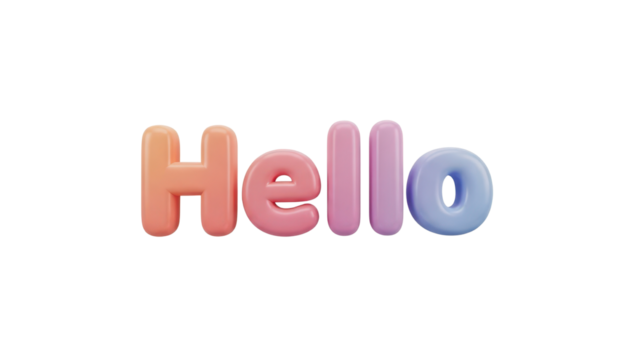 Vibrant orange chat balloon with "Hello Again!" text, plastic 3D cartoon icon, isolated on transparent background