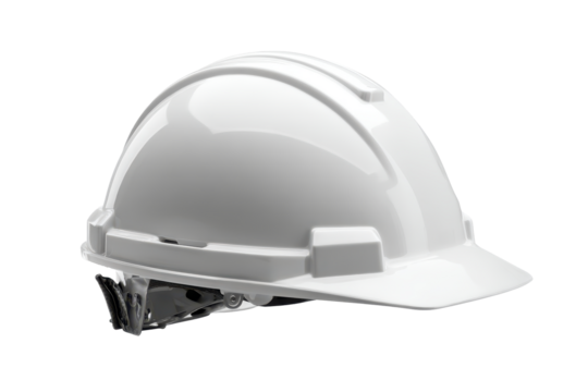 White hard hat safety helmet isolated on transparent background. White safety hard hat protection equipment for construction workers and industrial jobs isolated on white background.