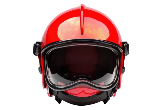 Futuristic cosplay helmet with neon visor, isolated from front angle, white background