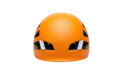 Orange climbing helmet PNG isolated on transparent background, safety headgear for mountaineering and rock climbing sports, protective equipment
