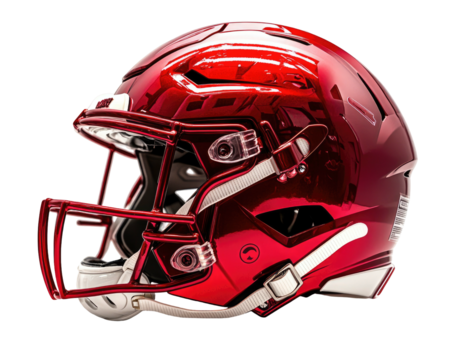 Red football helmet isolated on transparent background for protection and sport