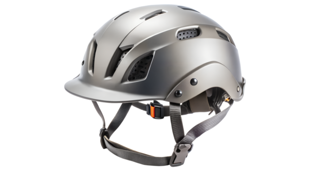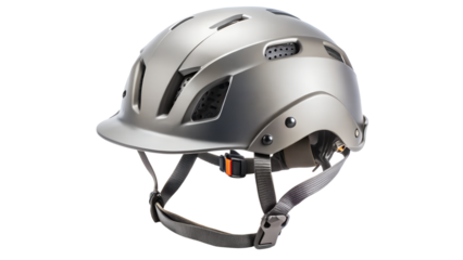 Sleek gray bicycle helmet isolated on transparent background, designed for safety and performance, ideal for cycling enthusiasts and safety campaigns