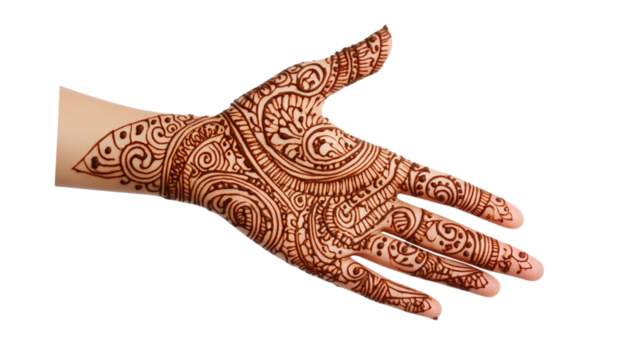 Artistic hand design with intricate tribal pattern on transparent background