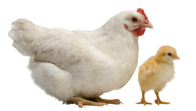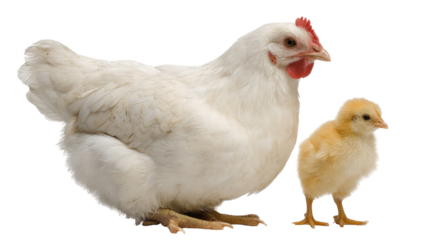 Hen with its chicks isolated on transparent background