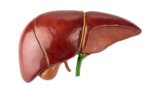 A realistic 3d illustration of a diseased human liver, isolated on transparent background