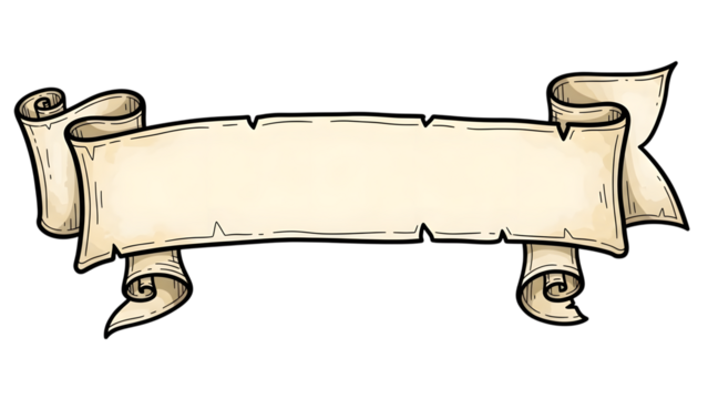 Vintage parchment scroll banner with aged texture and empty space for text, hand-drawn style
