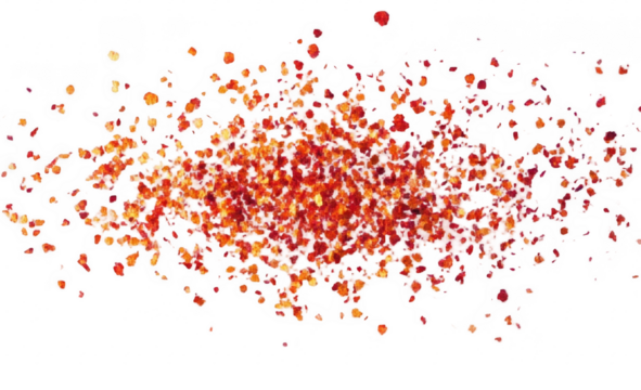 A vibrant pile of crushed red chili flakes spilling onto a clean surface, showcasing their rich colors and textures, ideal for culinary use or spice-related content