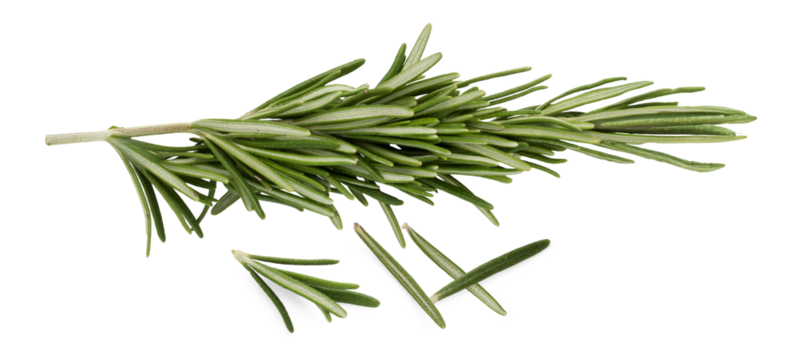 Fresh rosemary sprig on a transparent background showcasing vibrant green needles and aromatic qualities for culinary use