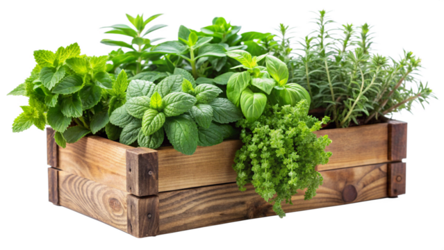 herbs in a wooden box