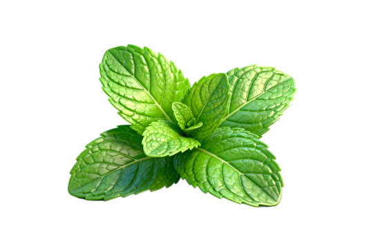 vibrant green mint plant with inflorescence and leaves, isolated on transparent background for design