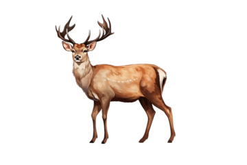 A deer with antlers on a Transparent or white background, Generative AI