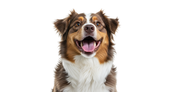 Australian Shepherd full body side view on white: intelligent herding breed.