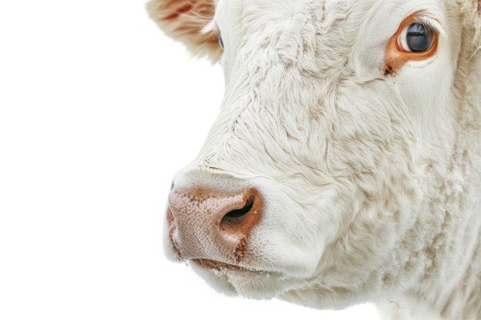 Hereford cow standing alone against a white background, showcasing its distinctive features and textures, illustrating the beauty of livestock