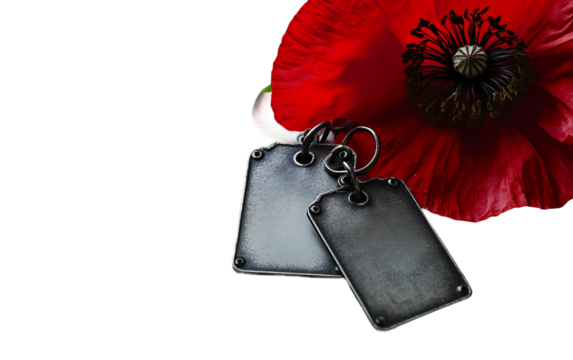 Military dog tags representing courage, service, and memory, symbolizing honor and fallen heroes on transparent background