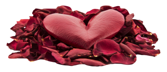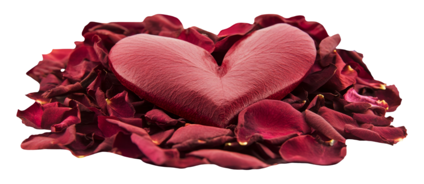Rotes Herz auf Rosenblättern, freigestellt.