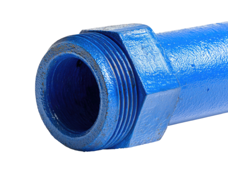 Blue pipe detail shows threaded end; close-up on dark backdrop