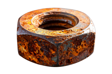 Rusty hex nut showing metal corrosion and industrial wear