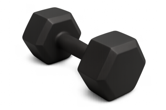 Black dumbbell laying on transparent background, promoting fitness and weightlifting