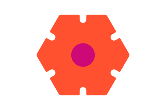 Settings Icon - Gear and hexagon settings icon in Orange and Magenta for configuration, preferences, and system options in a clean flat interface design, isolated on transparent background.