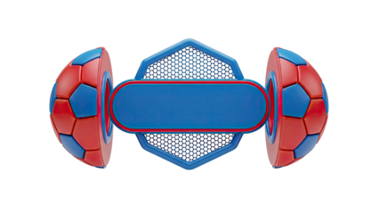 Abstract Red and Blue Soccer Ball Elements with Central Emblem