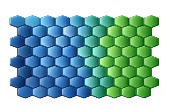 Hexagonal pattern tile background in blue and green gradient creating abstract geometric honeycomb texture with transparent background