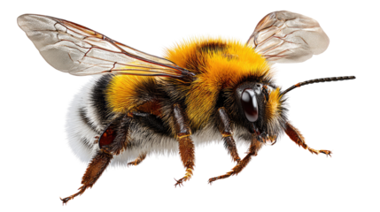 Bumblebee Close-up: A vibrant bumblebee, showcasing its fuzzy yellow and black body, intricate wings, and detailed facial features, is captured in a close-up shot.