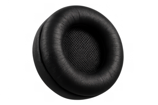 Black replacement headphone ear pad providing comfort and sound isolation, essential audio accessory, transparent background