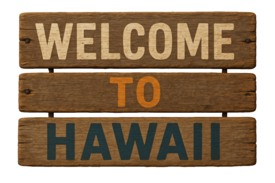 old bright sign made of trees on a transparent background. welcome to hawaii sign