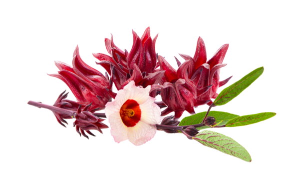 Roselle flower and fruit isolated on transparent background herbal medicine ingredient still life