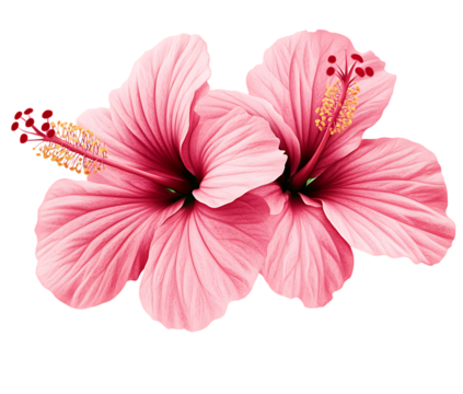 two pink hibiscus flower isolated on transparent background