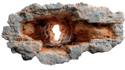 Rock formation creating dramatic cave entrance, isolated cutout with clean edges, perfect for blending into scenic backgrounds highlighting geological formations