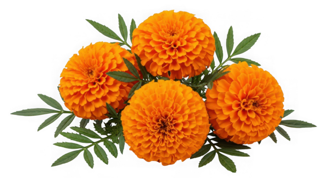 Marigold Shower: A captivating cascade of vibrant orange marigold flowers and petals gracefully falls against a blank canvas. The image evokes a sense of celebration, abundance.