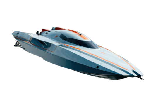 Sleek Blue-Orange High-Speed Powerboat Isolated on Transparent