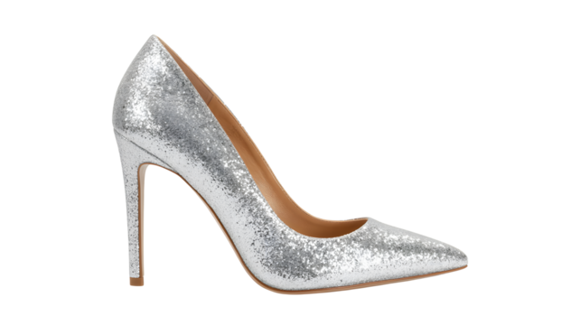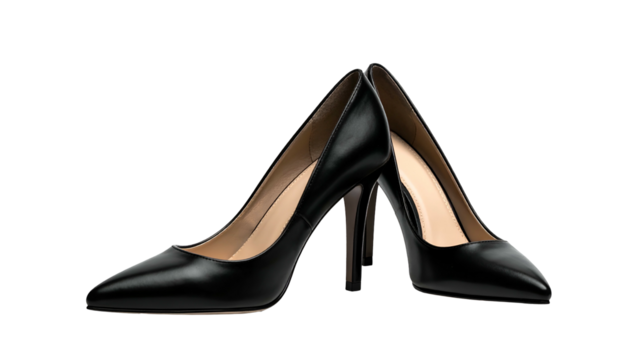 Elegant black high heel shoes, isolated on transparent background, fashion items