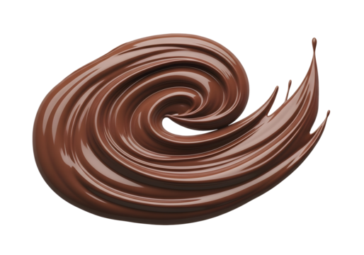 Chocolate milk splash creating a dynamic liquid curve with drops flying, isolated on transparent background