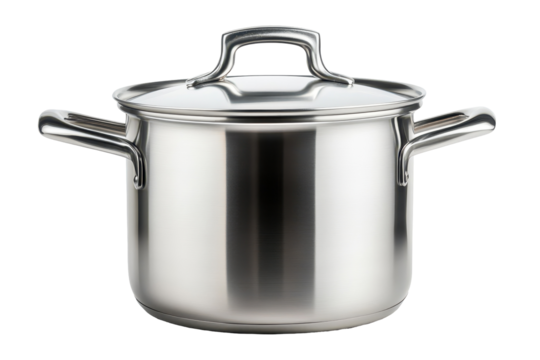 High quality stainless steel cooking pot PNG isolated on white ideal for recipe books and kitchen promotions