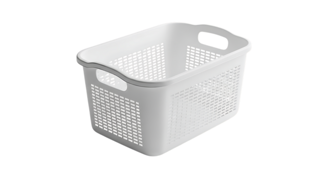 White Plastic Laundry Basket with Handles Empty and Isolated on Transparent Background Clean Storage Container for Clothes and Home Organization