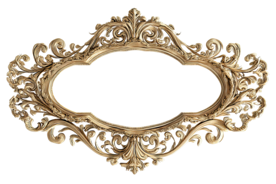 Elegant modern wall mirror with ornate frame design, isolated on transparent background in high resolution PNG format, ideal for digital interior design mockups and home decor visualizations