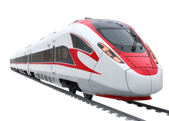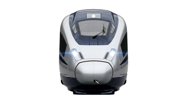 Sleek silver bullet train isolated on transparent background, high-speed rail transport for modern travel and futuristic design