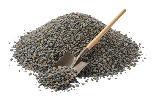 Excavation process of gravel pile with shovel construction site natural environment high angle. Cut out png