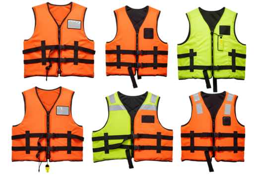 Assorted Brightly Colored Life Jackets for Safety and Visibility