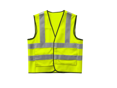 Yellow high visibility vest with reflective stripes isolated on a transparent background