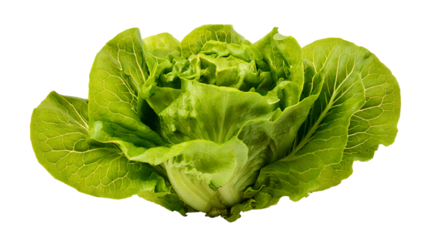 Lettuce, presented in transparent PNG format, realistic style with high resolution, isolated and clean edges, no background, vivid colors, natural texture, fresh appearance, detailed rendering, sharp