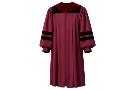 Isolated Academic regalia for higher education graduation ceremony, mortarboard, hood