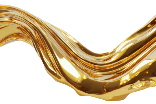 Flowing golden liquid, smooth surface, highlighted by reflections