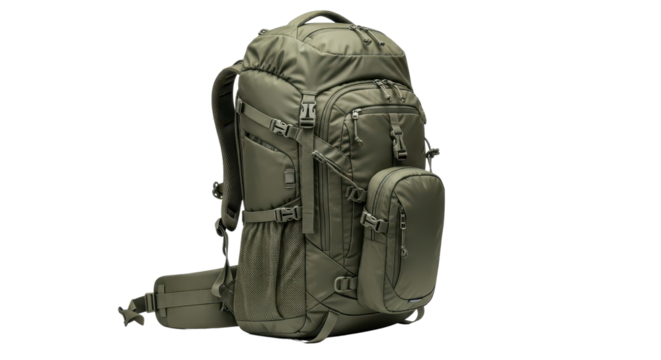 Hiking backpack with multiple compartments isolated PNG with Transparent Background