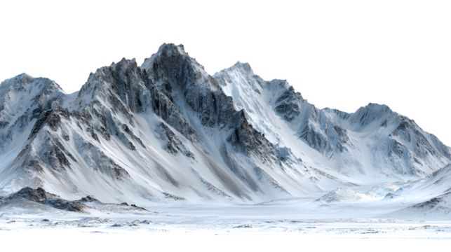 Majestic snowcapped mountain peak isolated on transparent background, a breathtaking landscape of natures grandeur and beauty