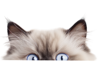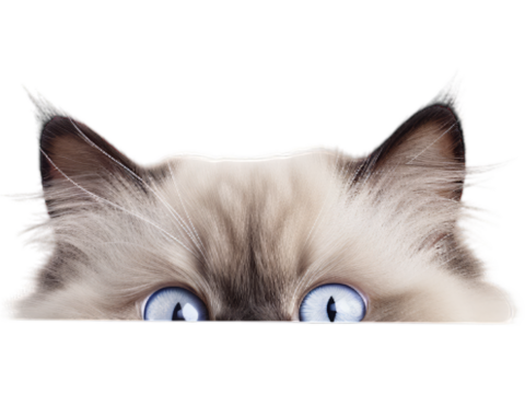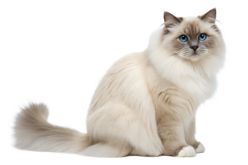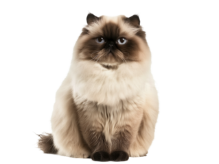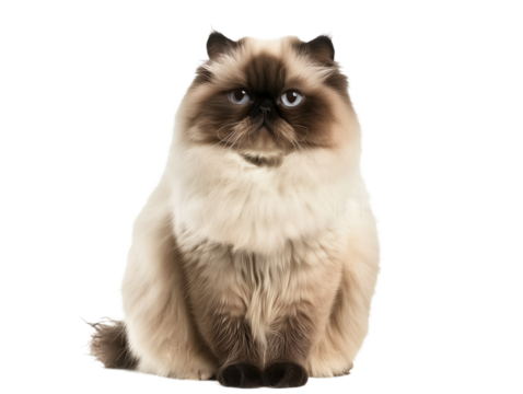 A fluffy Himalayan cat with deep blue eyes on a transparent background