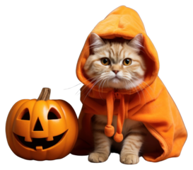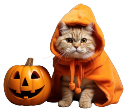 PNG Cat wearing pumpkin costume halloween mammal animal.