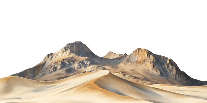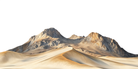 Desert sand dunes and rocky mountains isolated on a transparent background landscape